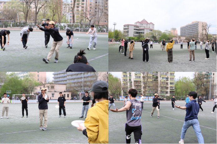 活动分为训练赛和对抗赛两个部分。在训练赛中,同学们在实践中学习飞盘运动的各项技术要领,开展传接训练、体能训练、技巧训练以及实战演练等模块。正式对抗赛中,各方队员迅速进入状态,飞奔、跳跃、传递、扑救,每一个动作都体现了力量与激情。绿茵赛场上,飞盘一次次在空中划出一道道优美的弧线,场边喝彩声不断。